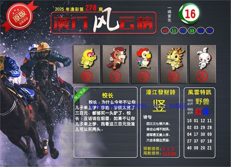 282期:风云榜-濠江發財詩【發】 诗句:更新中 今日生肖:更新中 |
